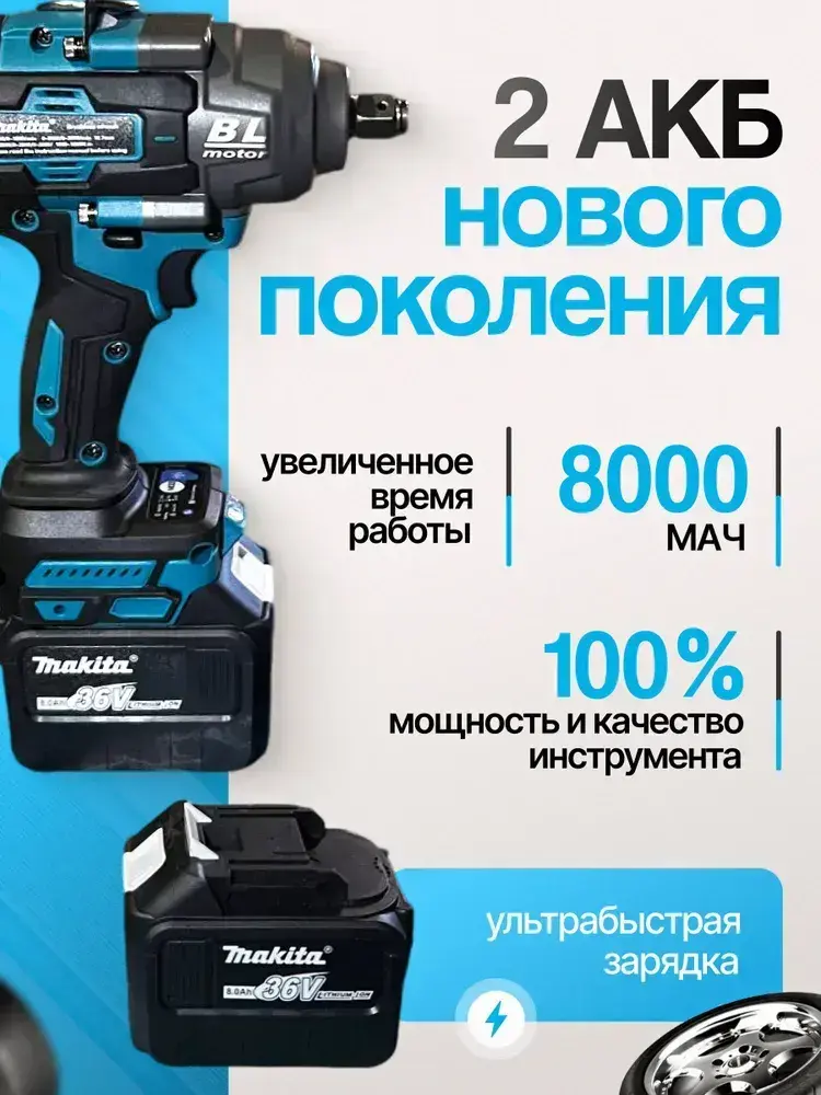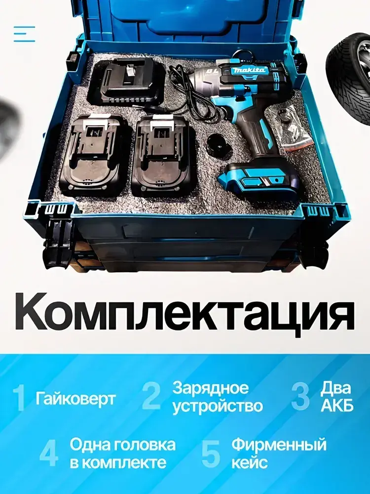 Гайковерт ударный аккумуляторный Makita 3600Нм, 1600 уд/мин, бесщеточный (в кейсе, с аккумулятором и зарядкой)
