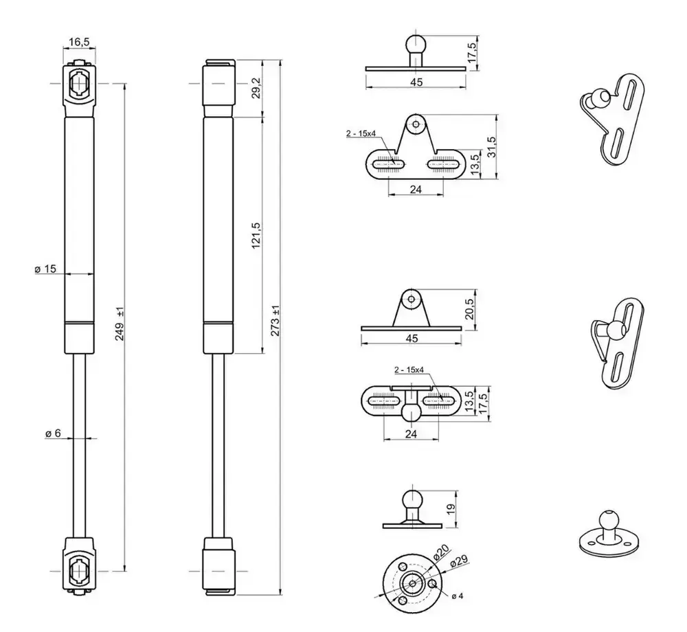 Газлифт мебельный MF 80H 1 шт
