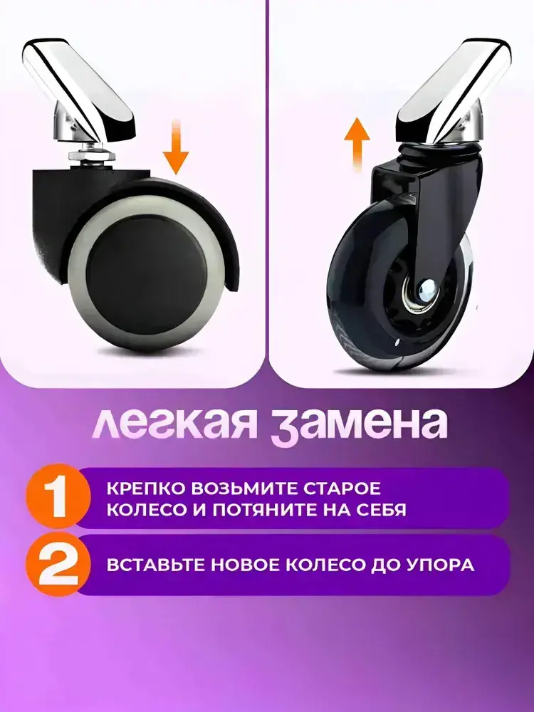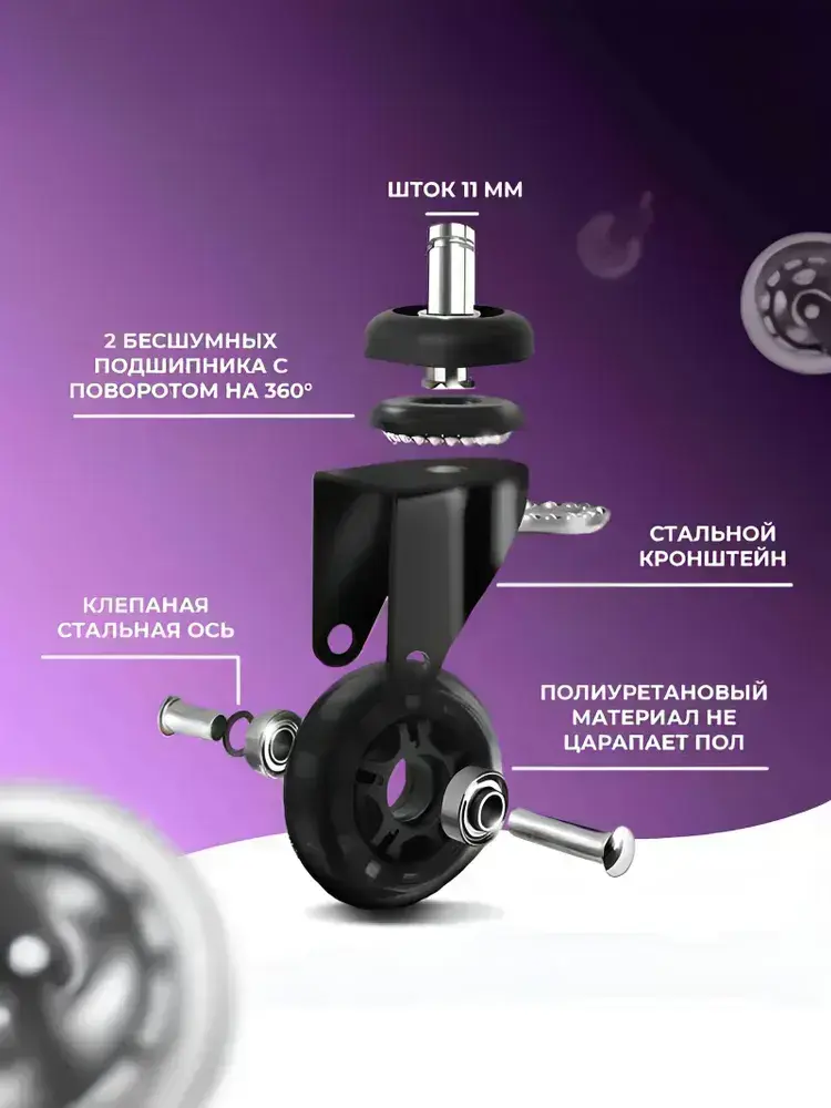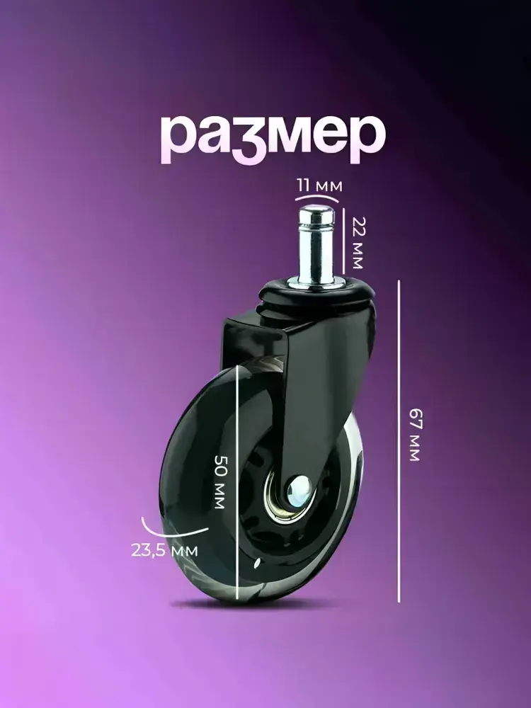 Гелевые колеса для кресла, диаметр 50 мм, 5 штук, черные