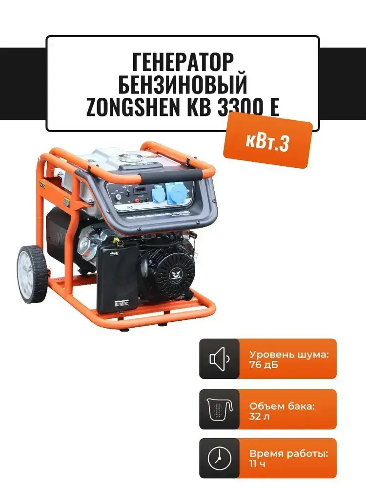 Генератор бензиновый 2.8 кВт ZONGSHEN KB 3300 E