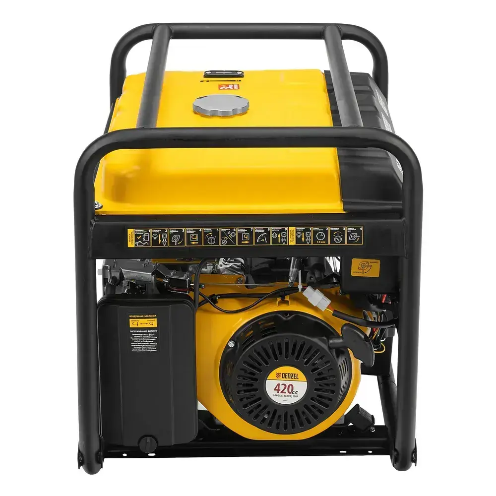 Генератор бензиновый DENZEL PS 70 EA, 7.0 кВт мощность и 420 см3 объем двигателя, 25 л, электростартер, блок AVR и коннектор автоматики, 3 розетки и выход постоянного тока USB 5В 946894