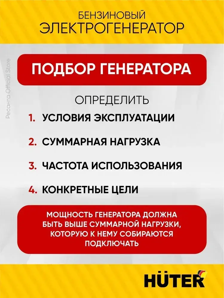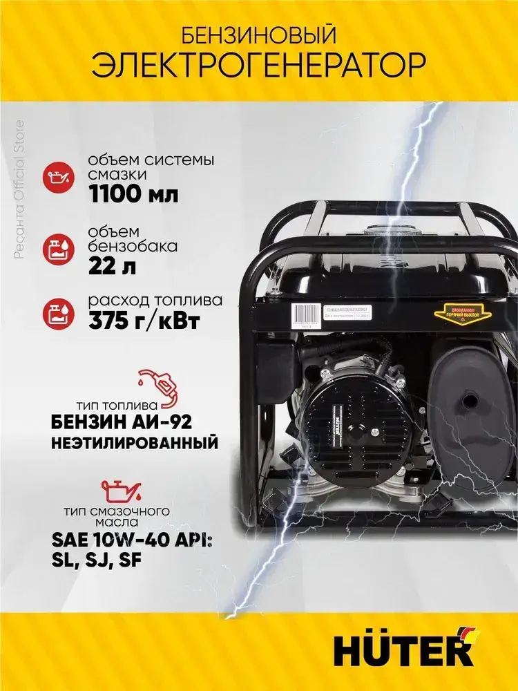 Генератор бензиновый DY-S6,5А Huter - номинал 5кВт, max 5.5 кВт, ручной стартер