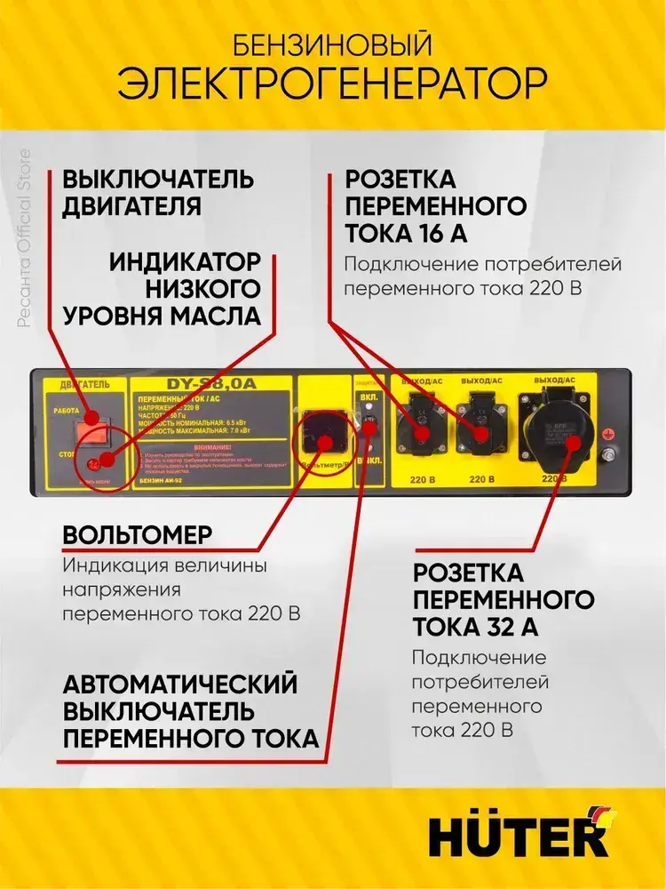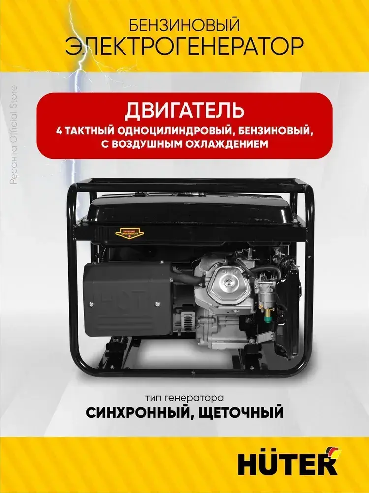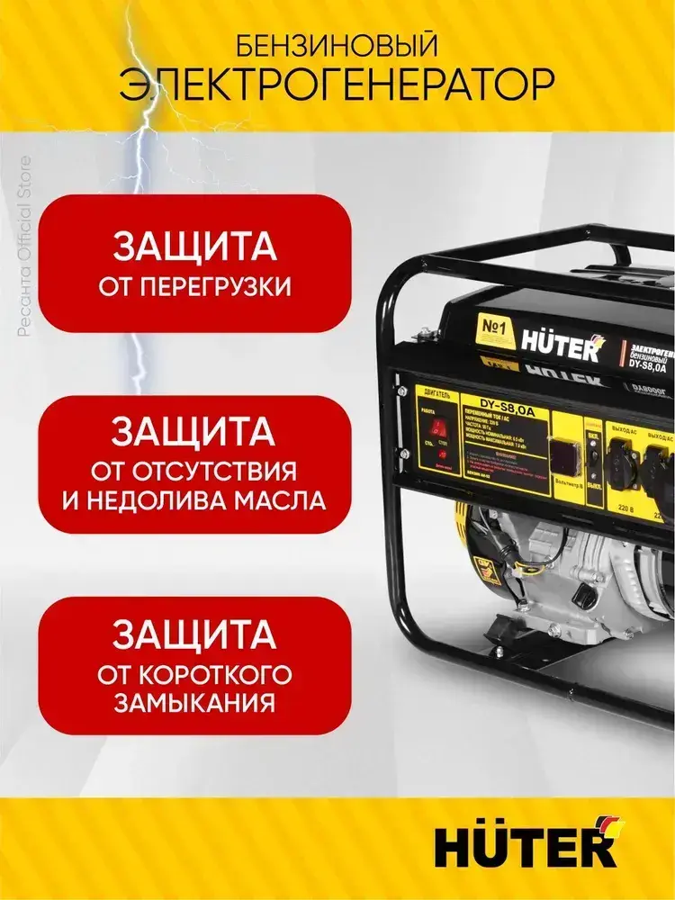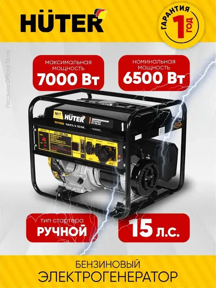 Генератор бензиновый DY-S8,0А Huter - 6,5 кВт; ручной стартер
