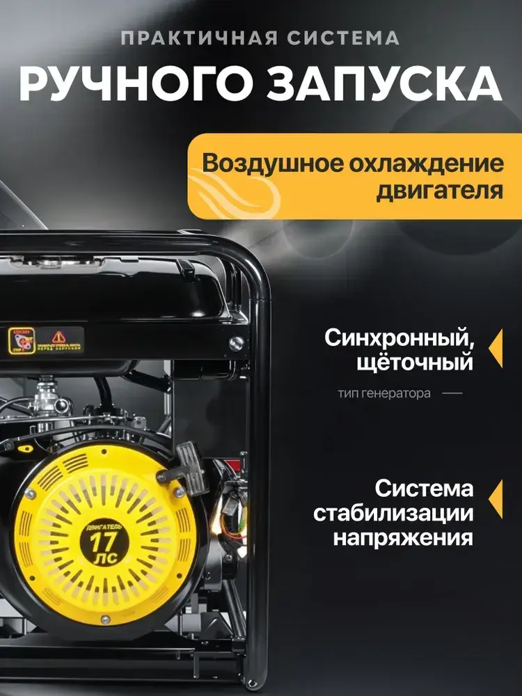 Генератор бензиновый, HUTER 10.000 КВА (17 л.с; ручной стартер; 4Т двигатель)