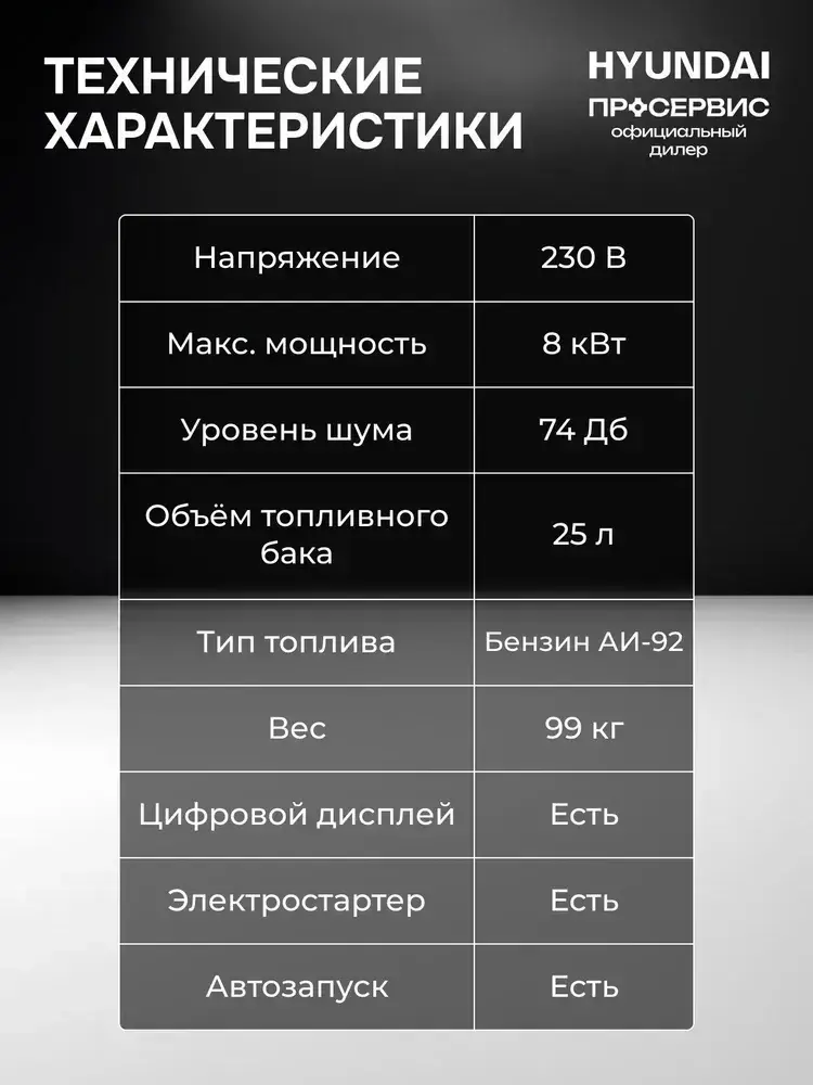 Генератор бензиновый Hyundai HHY 10050FE ATS 8 кВт, с встроенным блоком автозапуска и автоматической регуляцией напряжения, электростанция 99 кг
