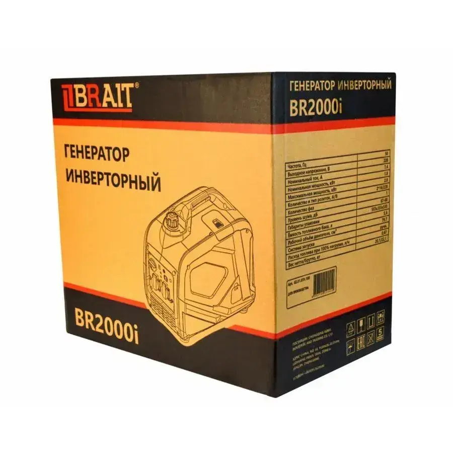 Генератор бензиновый инверторный BRAIT BR2000i сеть 220В, 2000Вт, туристический, бак 5.6л, для дачи охоты рыбалки