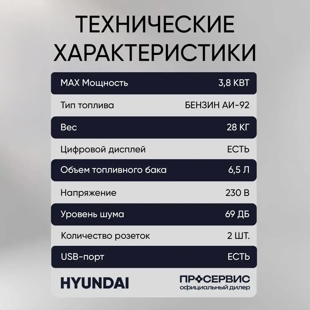 Генератор бензиновый инверторный Hyundai HHY 4050Si 3,8 кВт