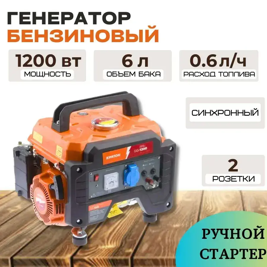 Генератор бензиновый Кратон GG-1200 (1200 Вт; ручной стартер; расход топлива 0,66 л/ч)