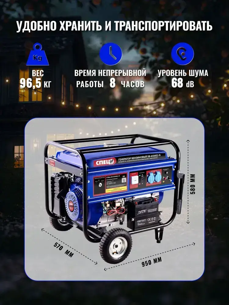 Генератор бензиновый СПЕЦ SB-6500E2-N ( 5500Вт, АКБ в комплекте)