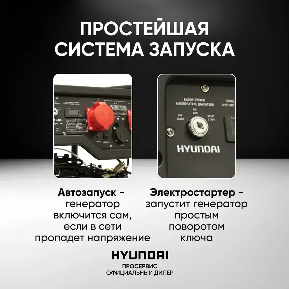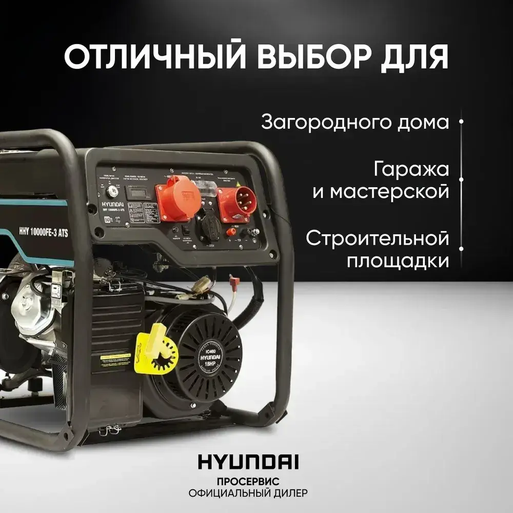 Генератор бензиновый трехфазный 8 кВт 400В Hyundai HHY 10000FE-3 ATS, бензогенератор с встроенным блоком автозапуска, электростанция 89,5кг