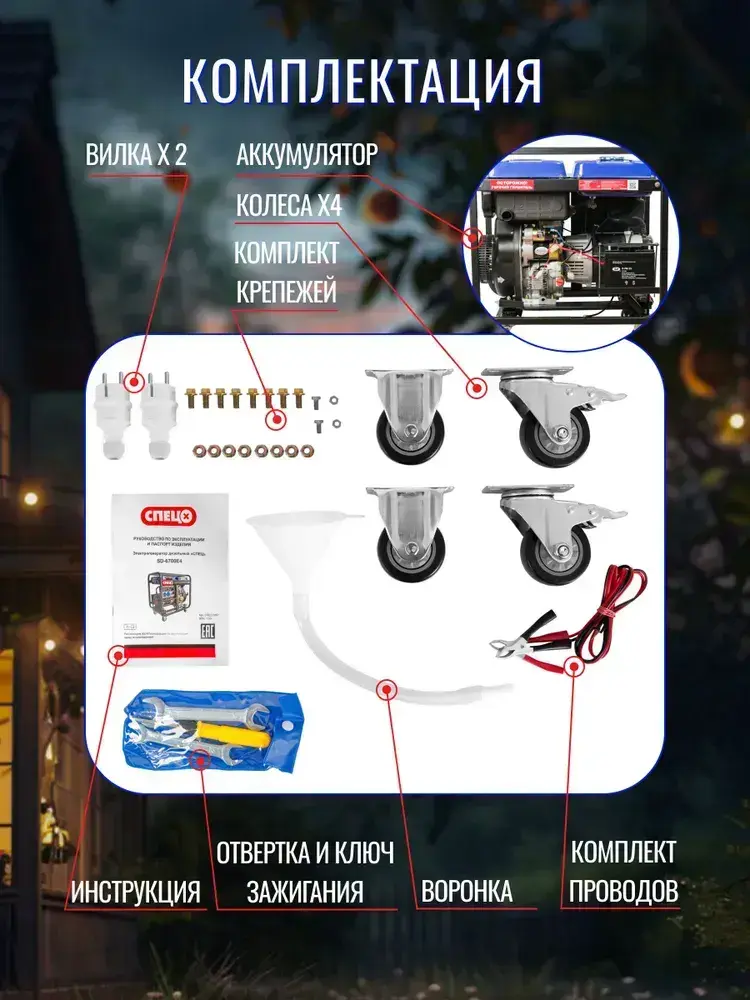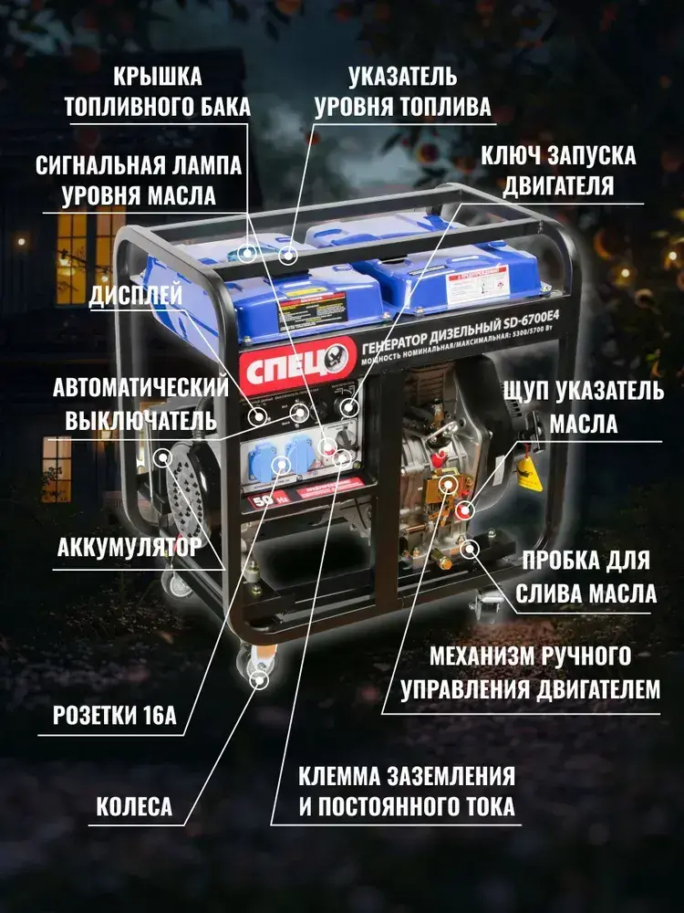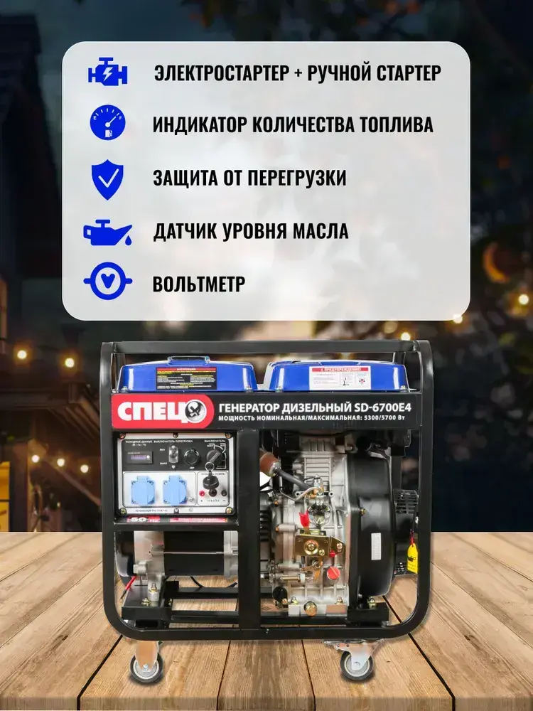 Генератор дизельный СПЕЦ SD-6700E4 ( 5700 Вт, АКБ в комплекте)
