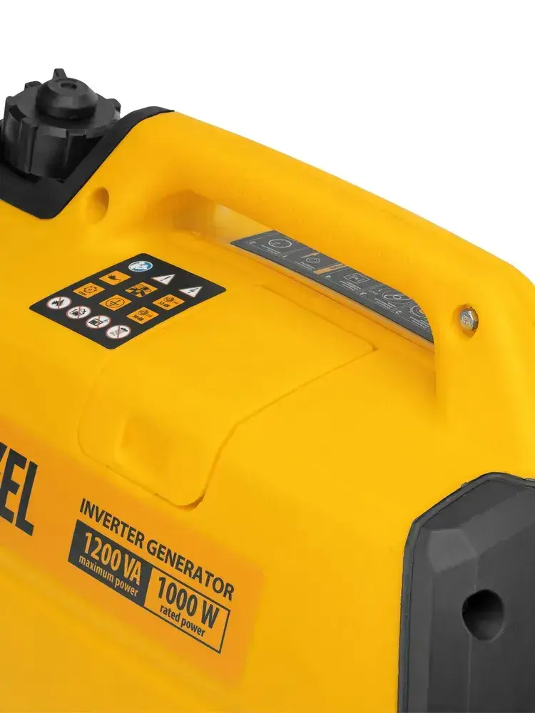 Генератор инверторный DENZEL GT-1200iS, 1.2 кВт и 53.5 см3 объем двигателя, 2.4 л объем топливного бака, ручной стартер и режим ECO, 1 розетка и выход постоянного тока 12 В, 94701