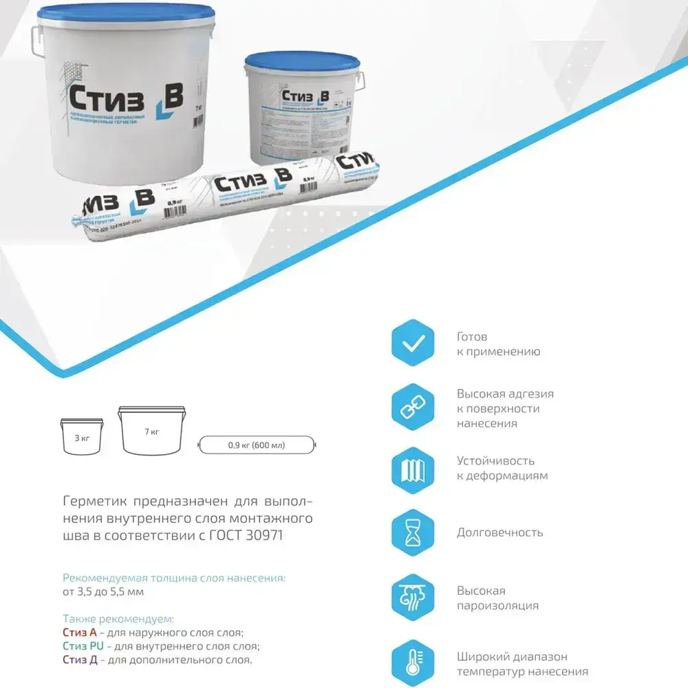 Герметик акрилатный пароизоляционный Сази Стиз В белый 7 кг