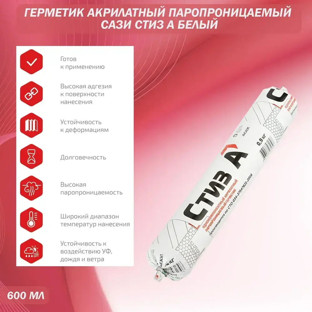 Герметик акрилатный паропроницаемый Сази Стиз А белый 600 мл