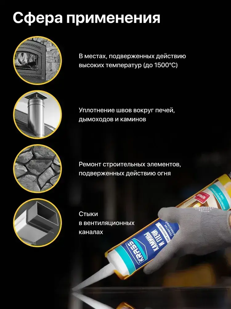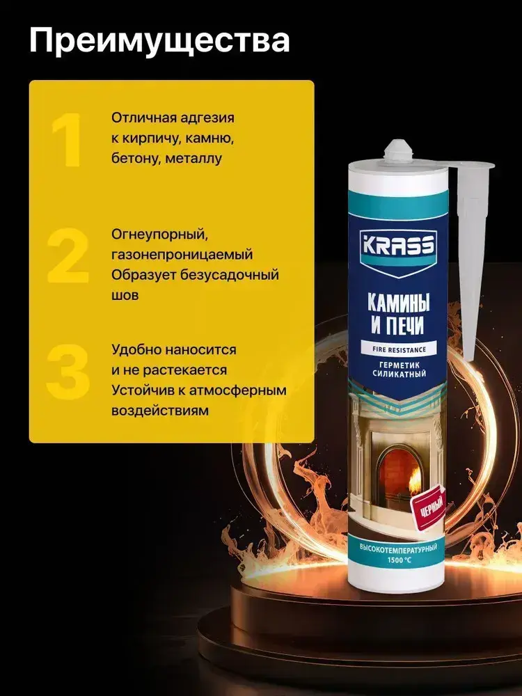 Герметик для каминов и печей силикатный Черный 1500С KRASS 300мл (Россия)