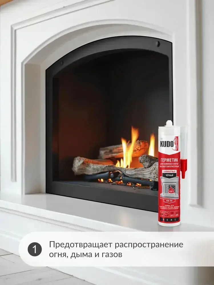 Герметик для печей и каминов высокотемпературный KUDO "KSK 702" силикатный, чёрный