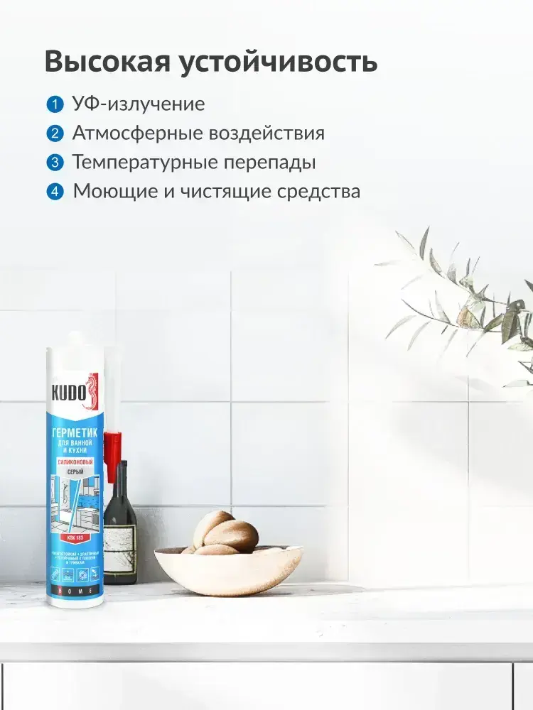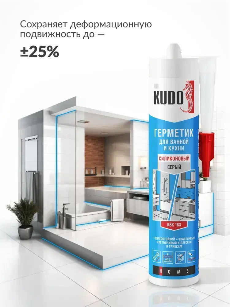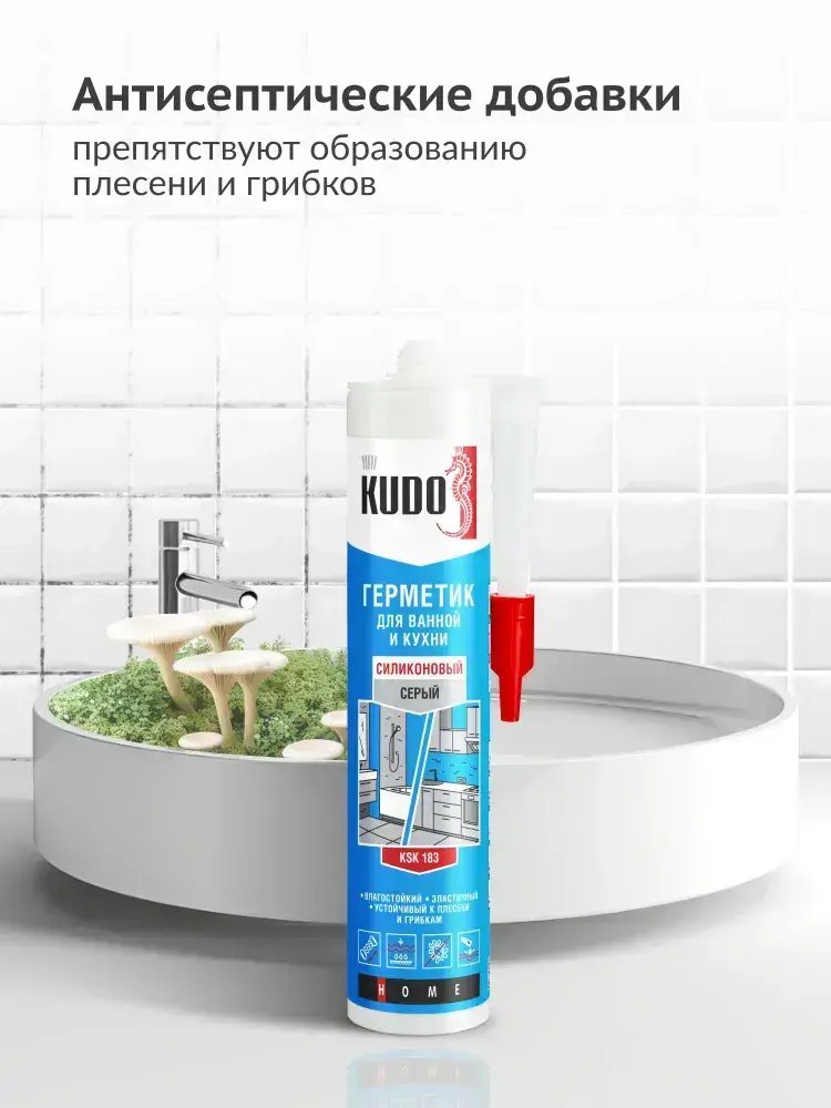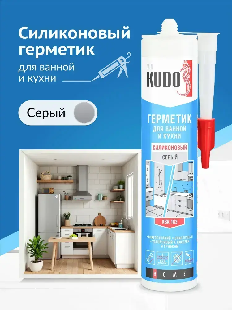 Герметик для ванной и кухни силиконовый KUDO "KSK 183", 280 мл, серый