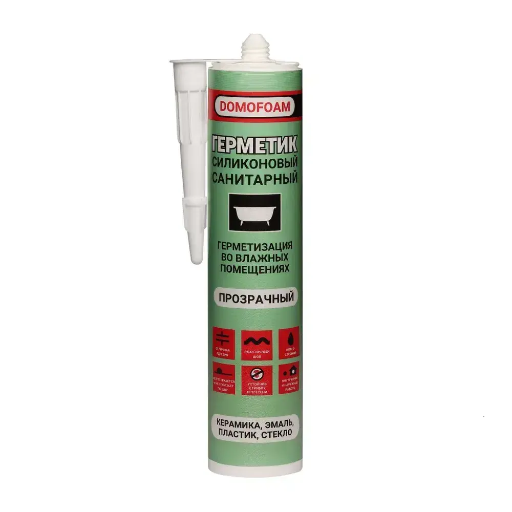Герметик санитарный силиконовый для ванной, 260мл DOMOFOAM, прозрачный (Импорт)
