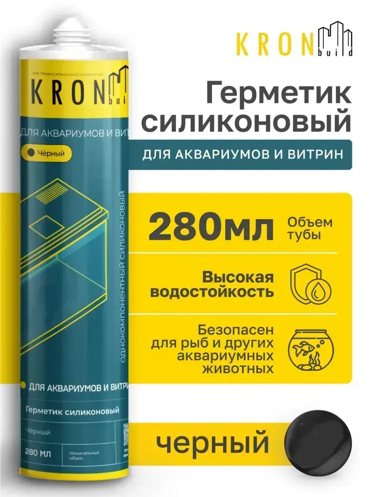 Герметик силиконовый KRONbuild для аквариумов и витрин, 280 мл черный