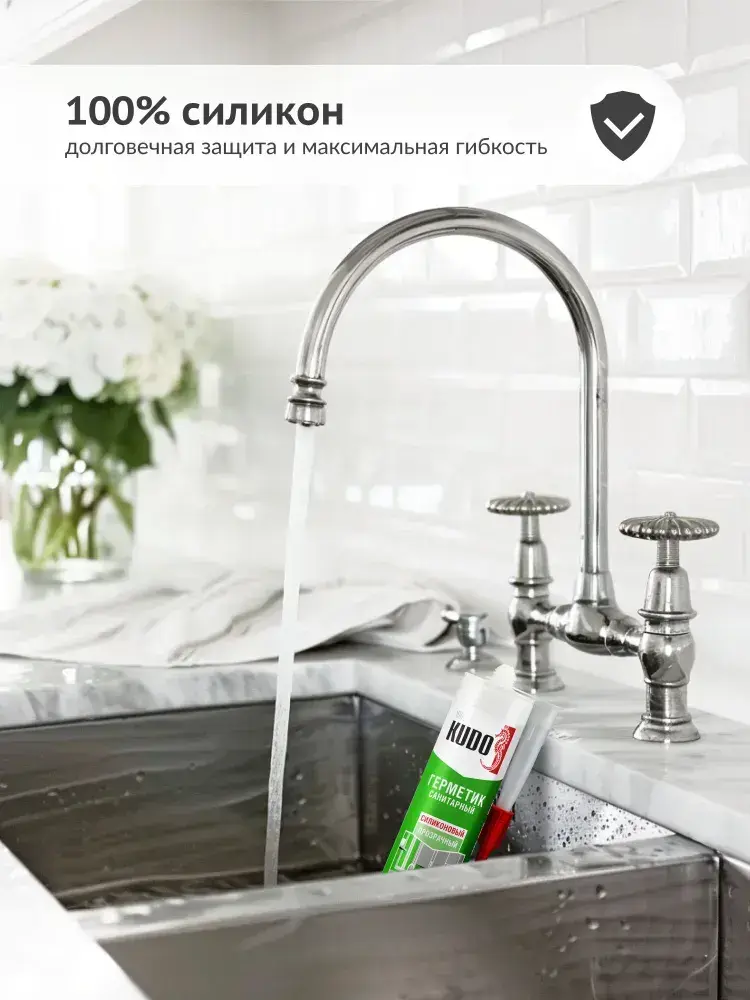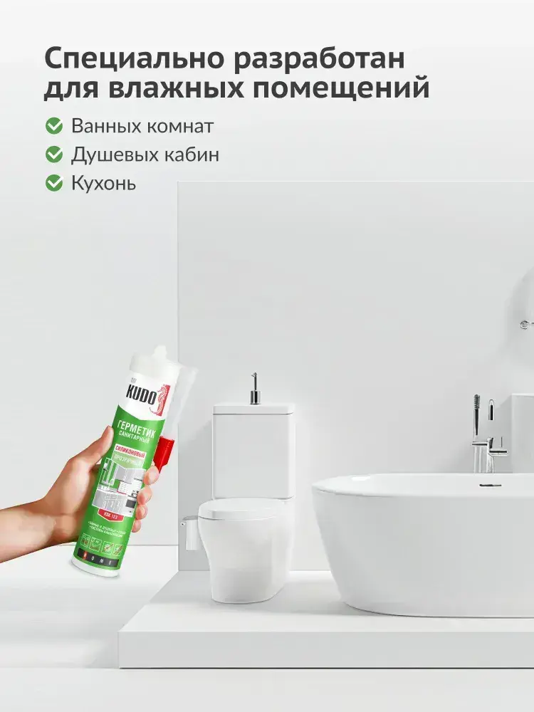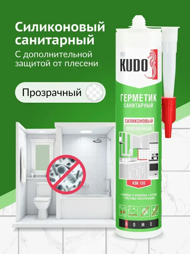 Герметик силиконовый санитарный KUDO "KSK 120", для ванной и кухни, 280 мл, прозрачный