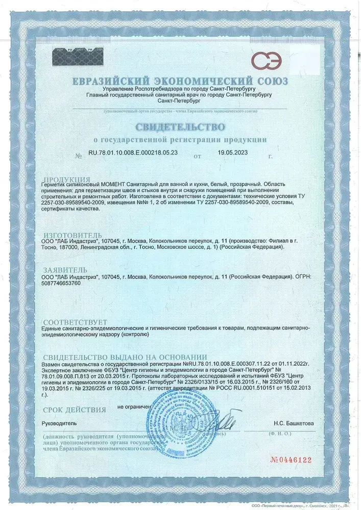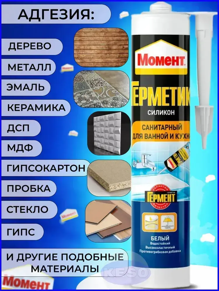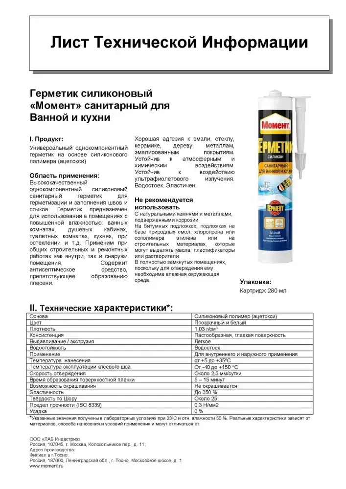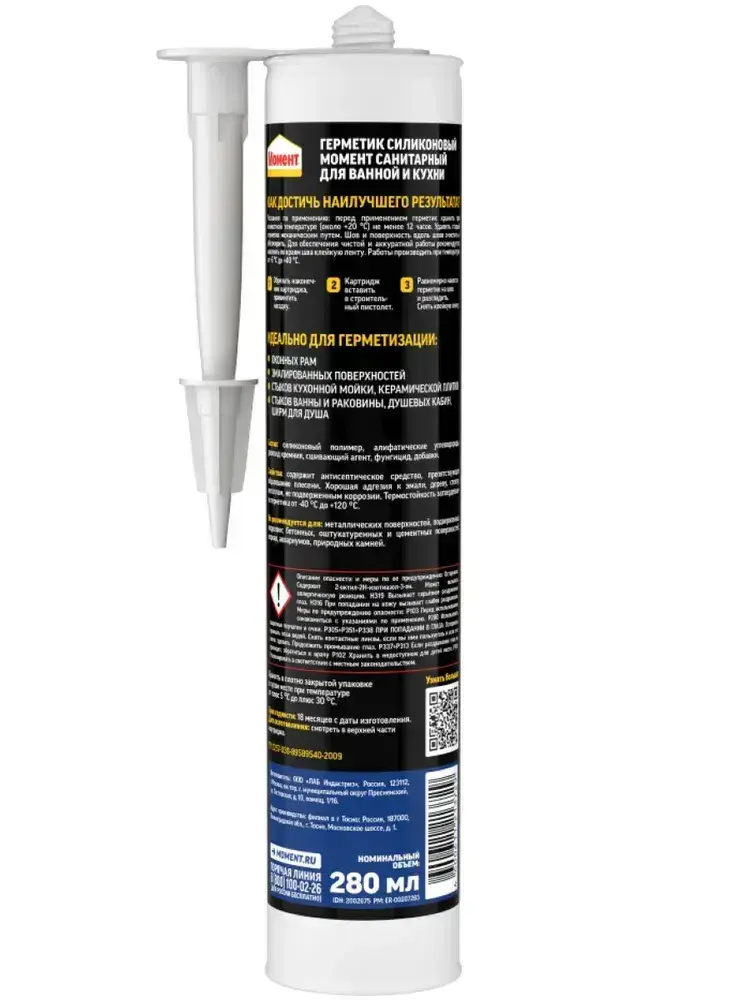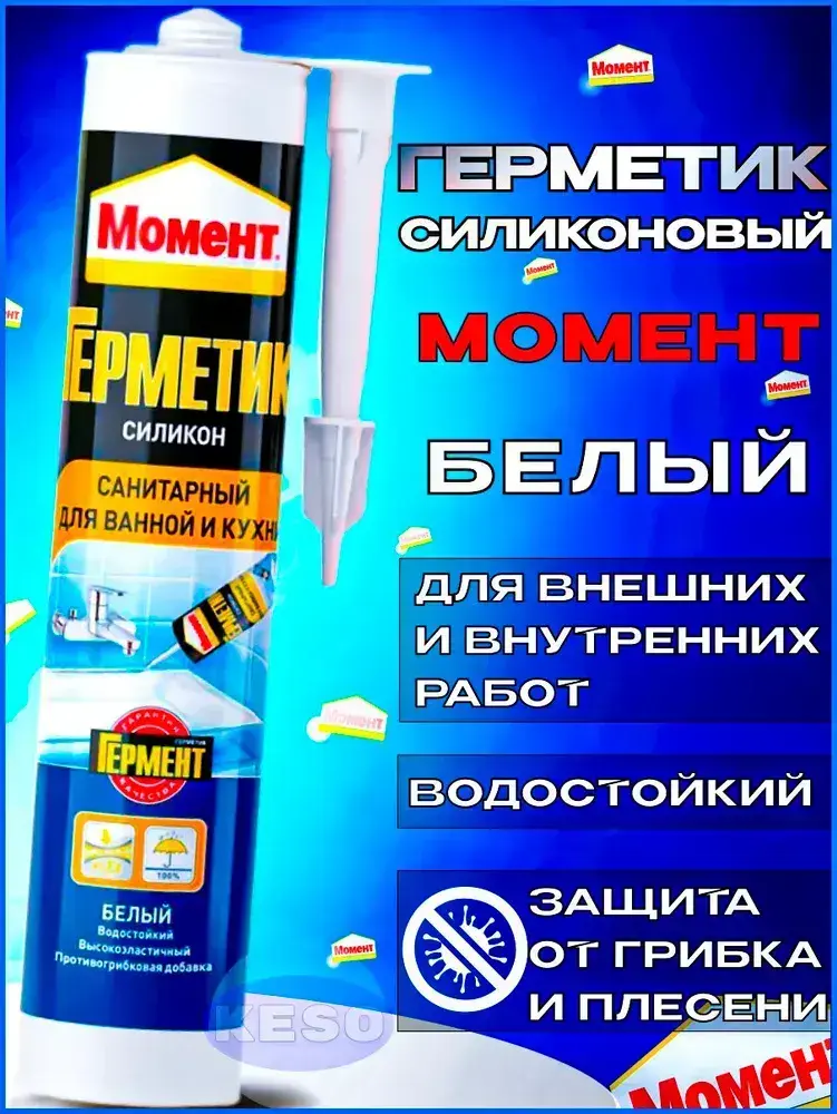 Герметик силиконовый санитарный Момент 280 мл БЕЛЫЙ для ванной и кухни водостойкий