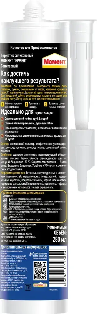 Герметик силиконовый санитарный Момент Гермент белый 280 мл