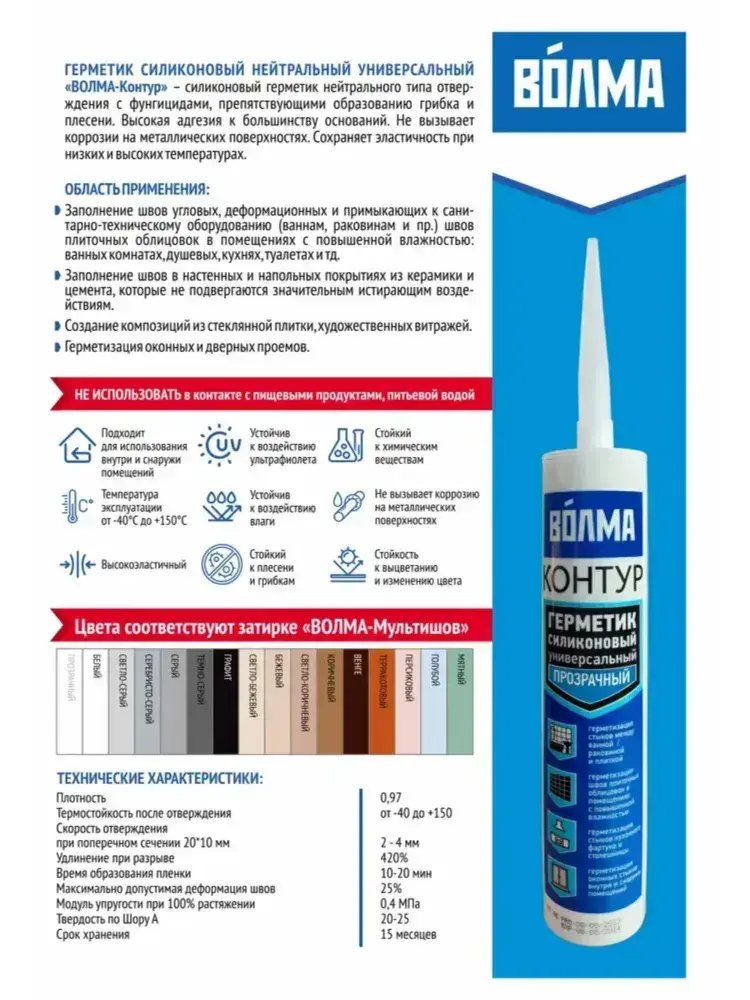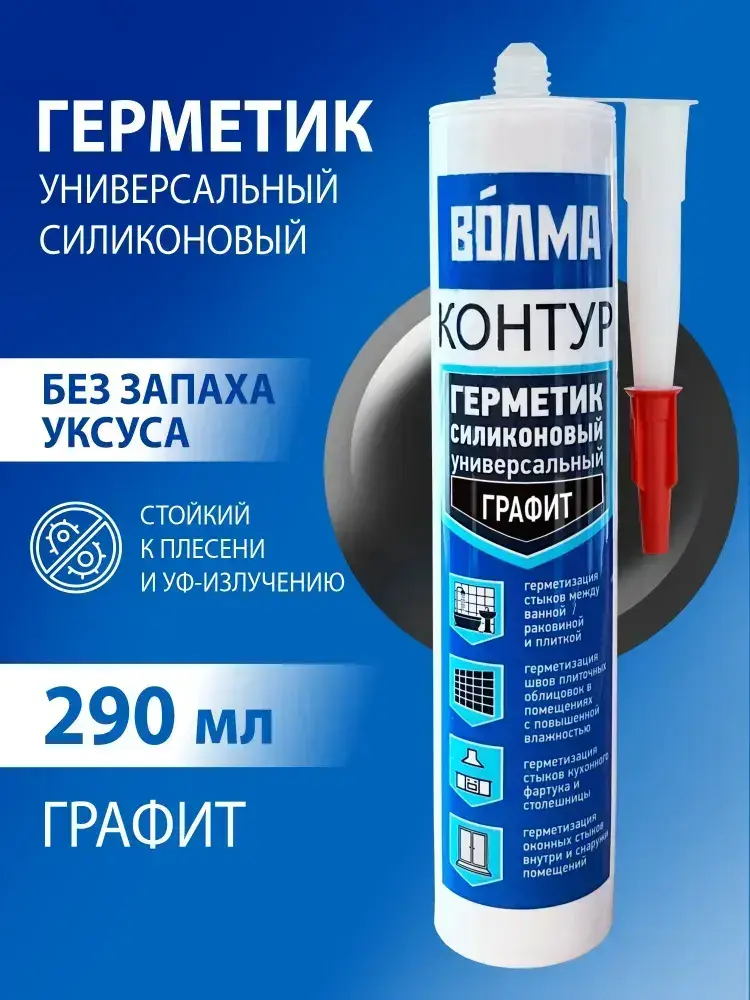 Герметик силиконовый ВОЛМА-Контур, цвет графит, герметик для ванной, 290мл