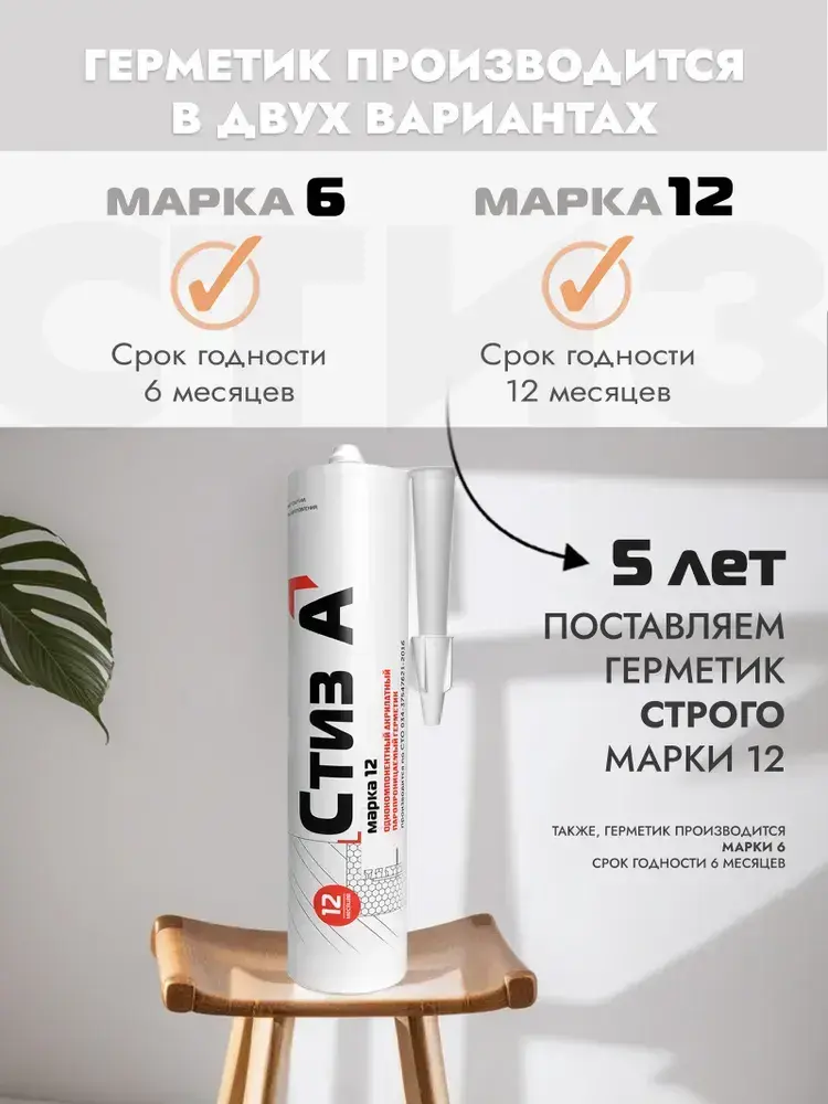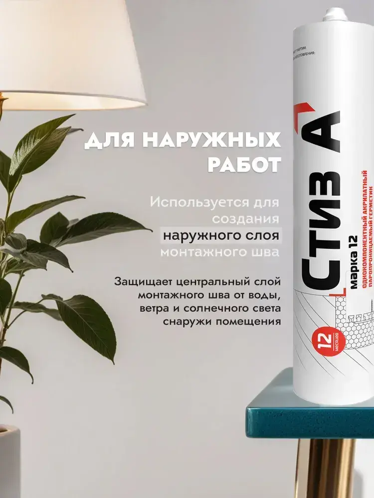 Герметик СТИЗ А, 310 мл, для установки окон, Паропроницаемый, белый