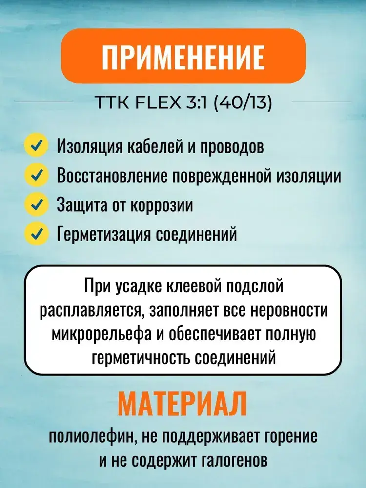 Гибкая термоусадочная клеевая трубка ТТК "Flex"(3:1)-40/13 чёрная с коэффициентом усадки 3:1 (КВТ)