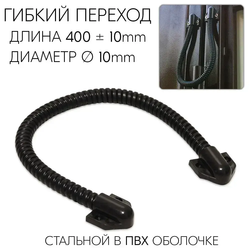 Гибкий переход для провода, кабеля KL-10, на калитку, дверь для замка внутренний диаметр 10 мм, длина 400 мм, оцинкованная сталь в ПВХ оболочке, цвет черный