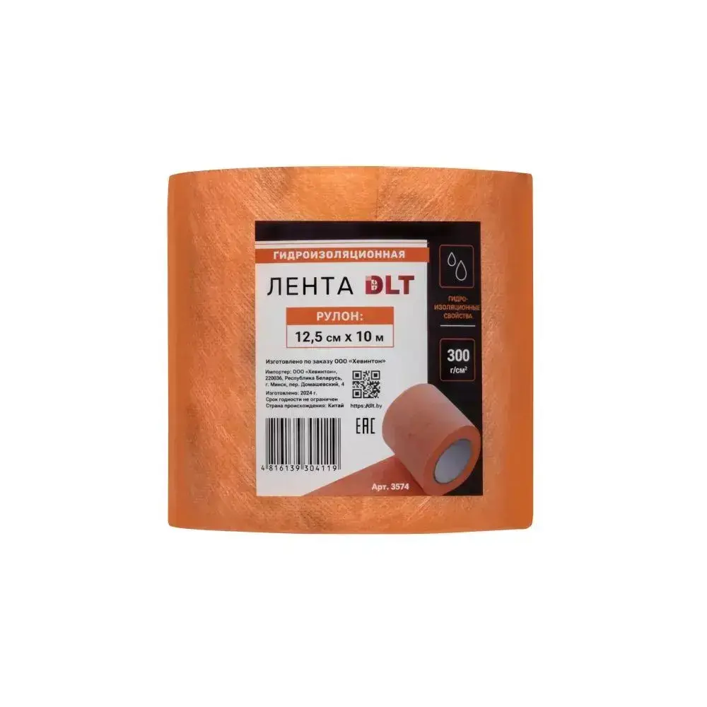 Гидроизоляционная лента DLT (оранжевая), 300 г/см , рулон 12.5 см * 10 м, арт.3574