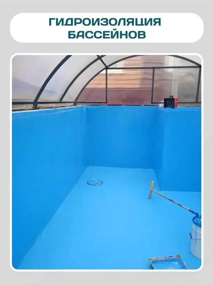 Гидроизоляция для бассейна, резервуаров, фонтанов, водоемов Elastomeric Pool. Мастика гидроизоляционная полимерная , жидкая резина для защиты фундамента и бетона от влаги. Не битум