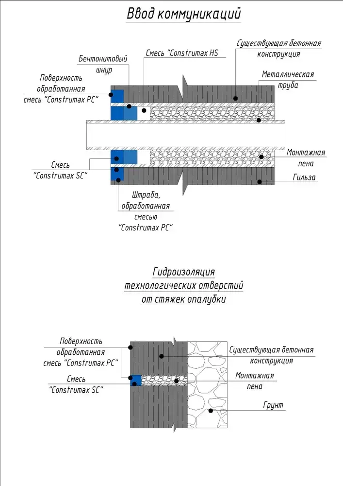 Гидроизоляция для бетона проникающая Construmax PC, 5.0 кг / Конструмакс