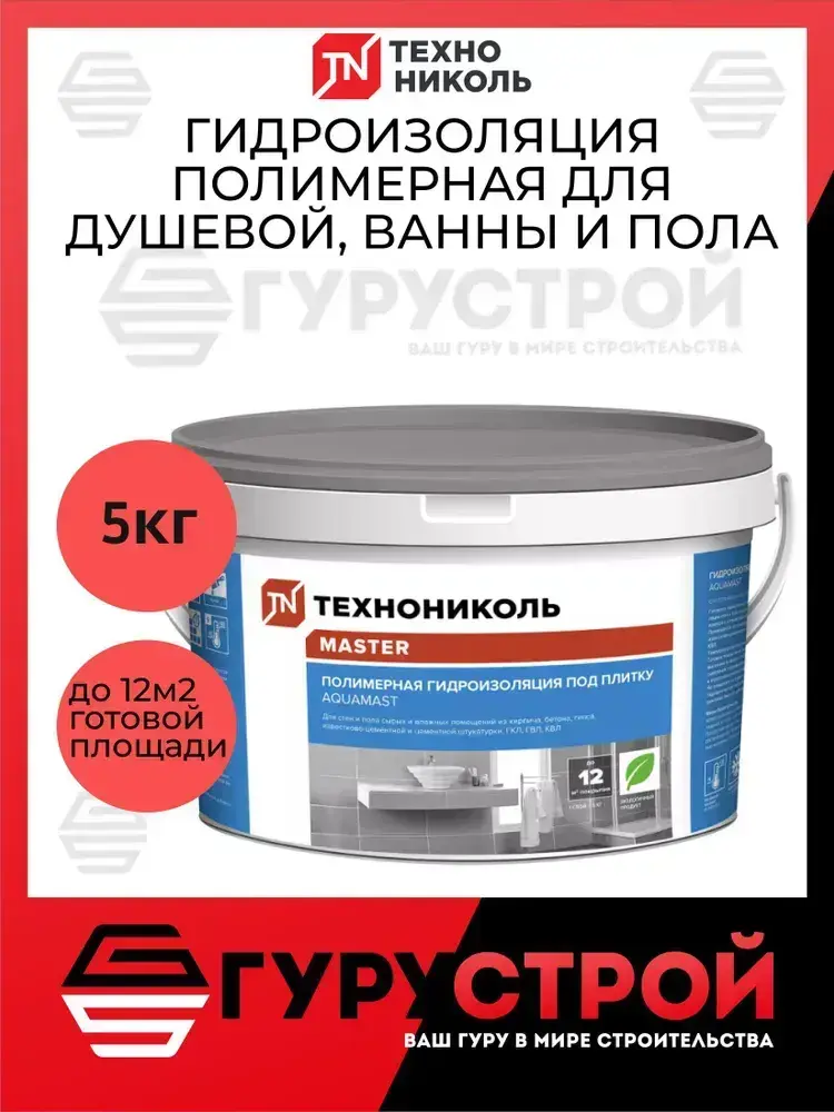 Гидроизоляция для ванны полимерная AquaMast, для душевой, кухни, пола, влажных помещений 5 кг