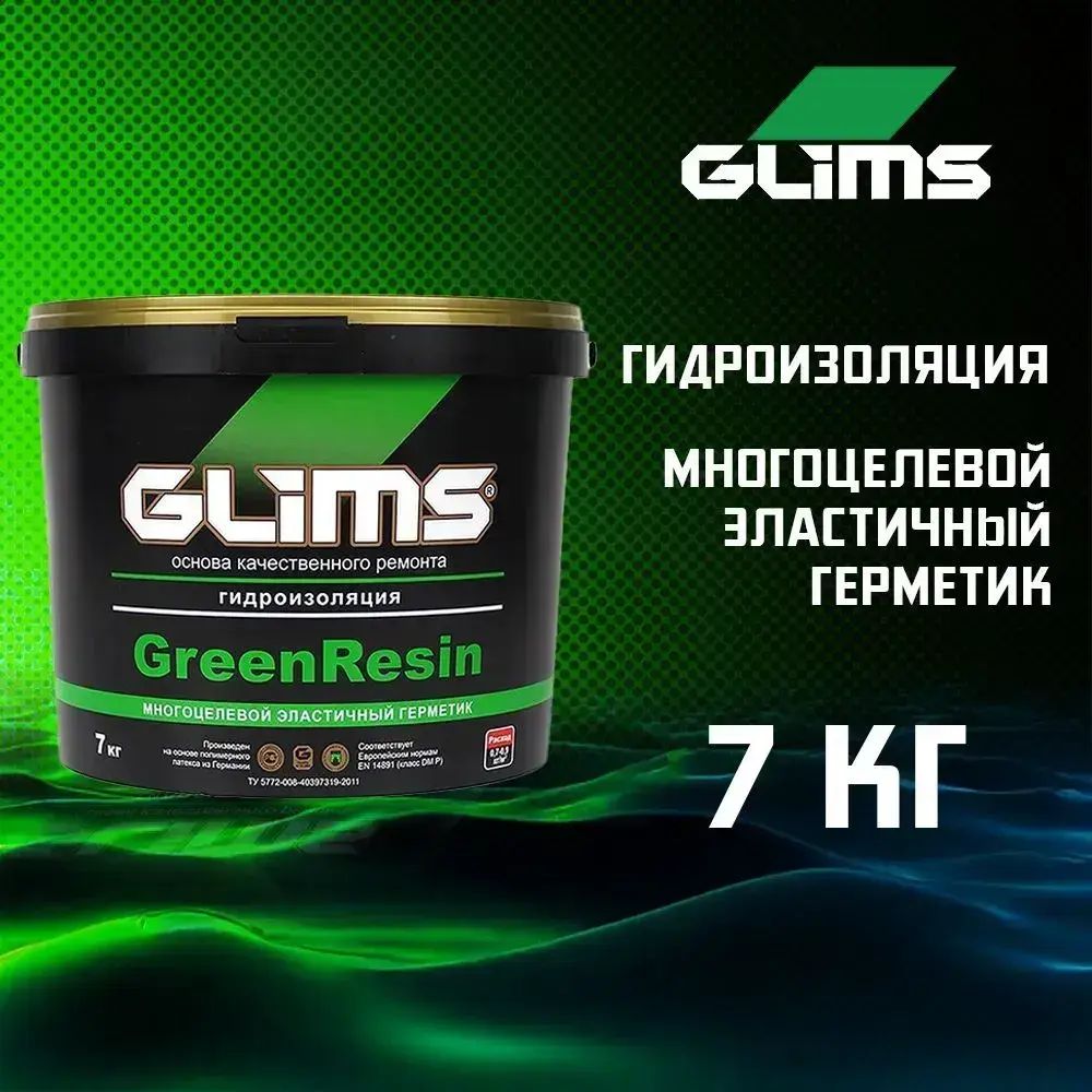 Гидроизоляция эластичная Glims GreenRezin мастика глимс для ванной комнаты, кухни, балкона, стен и пола 7 кг