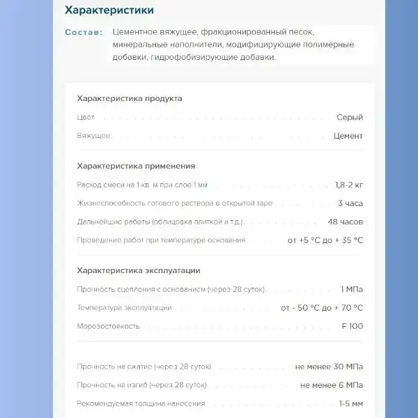 Характеристики