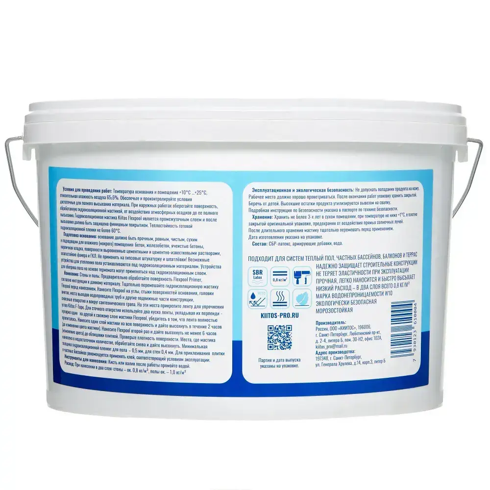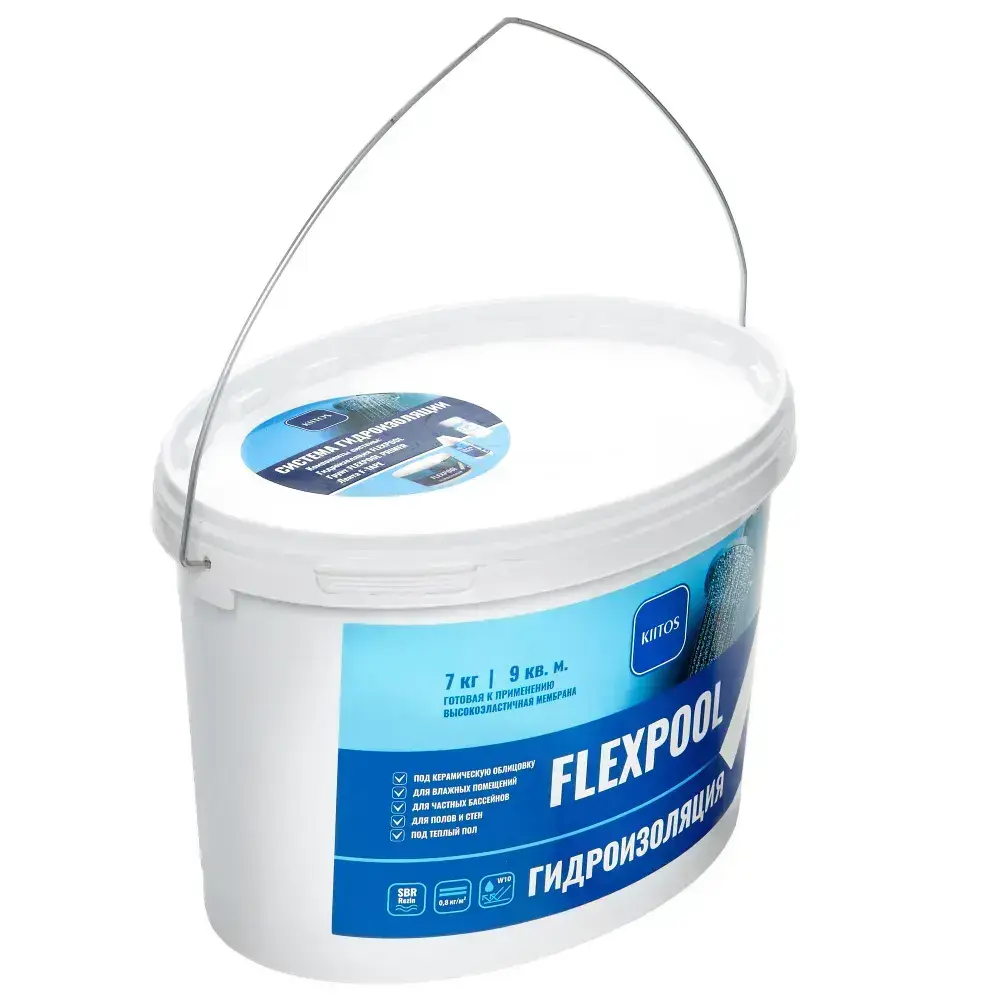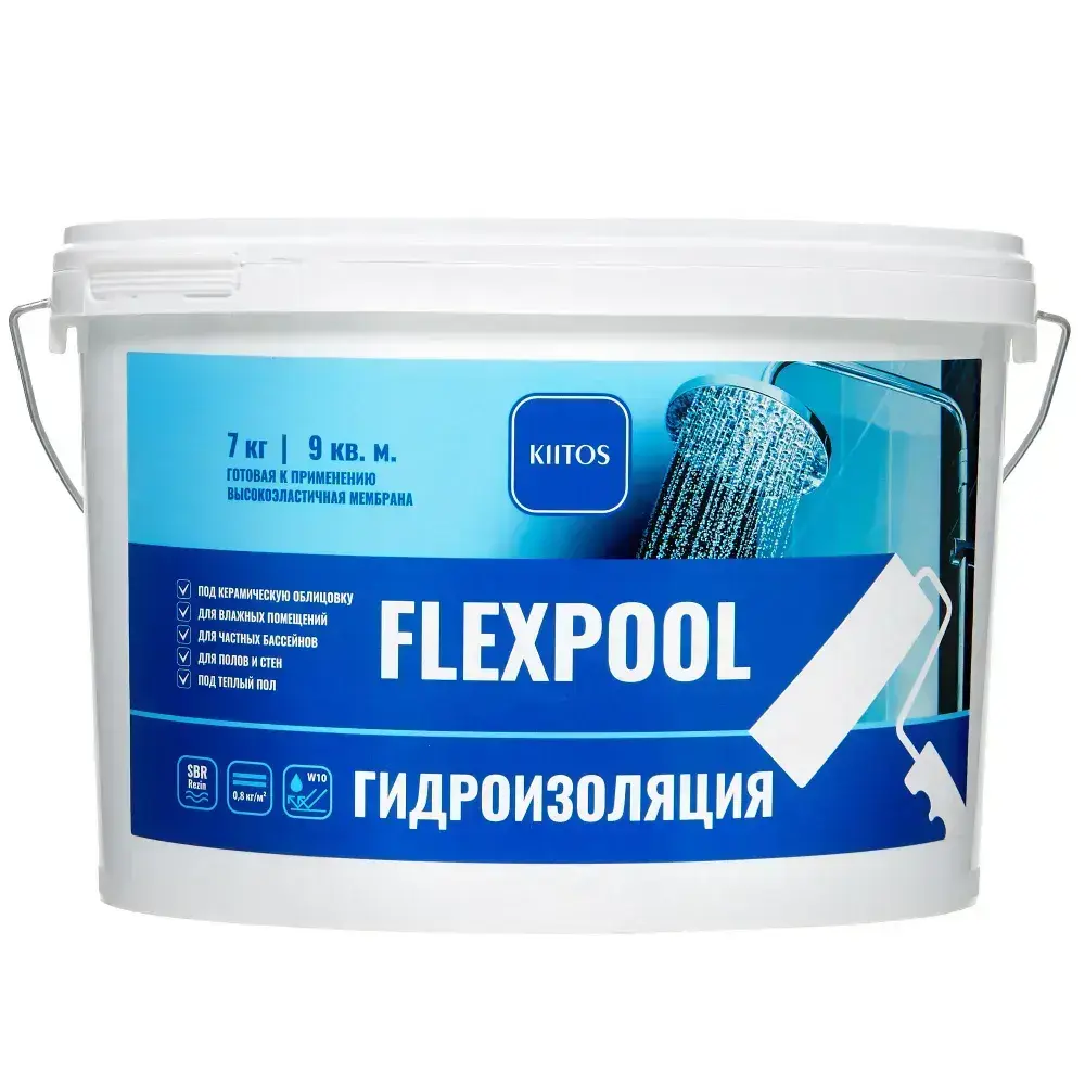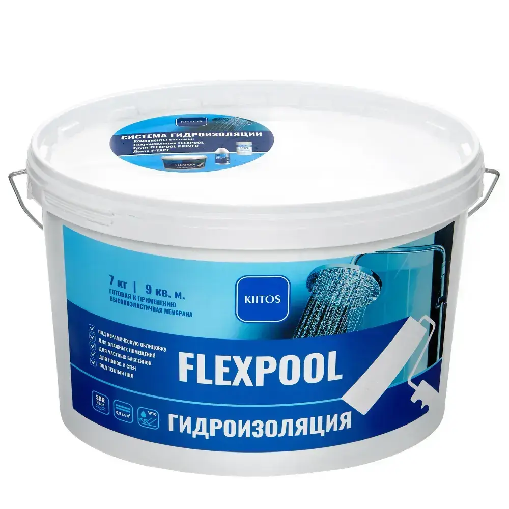 Гидроизоляция обмазочная на основе искусственного каучука для душевых и ванных комнат KIITOS FLEXPOOL, 7кг