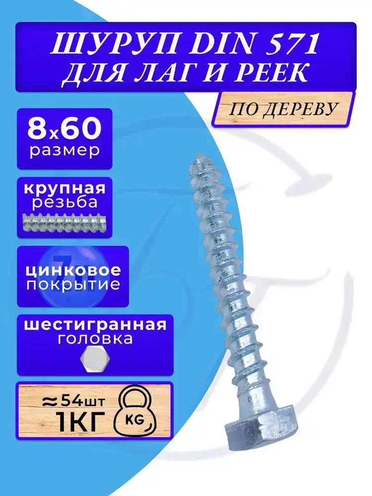 Глухарь по дереву шуруп для лаг и реек DIN571 8х60