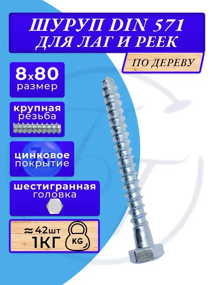 Глухарь по дереву шуруп для лаг и реек DIN571 8х80