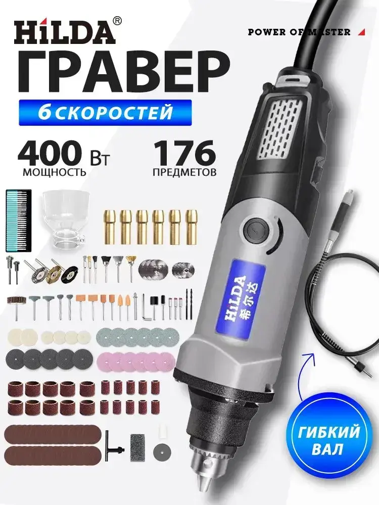Гравер электрический, 400 Ватт, 6-Ступенчатая Регулировка Скорости