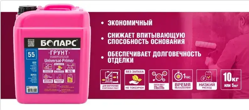 Грунт Боларс глубокого проникновения Universal Primer (55) грунтовка для стен, пола, отделки помещений 5 кг