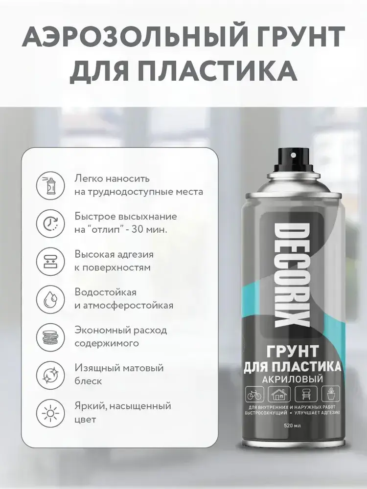 Грунт для пластика аэрозольный белый матовый DECORIX - грунтовка для пластика в баллончике 520 мл