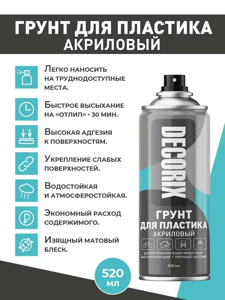Грунт для пластика аэрозольный черный матовый DECORIX - грунтовка для пластика в баллончике 520 мл - комплект 2 шт