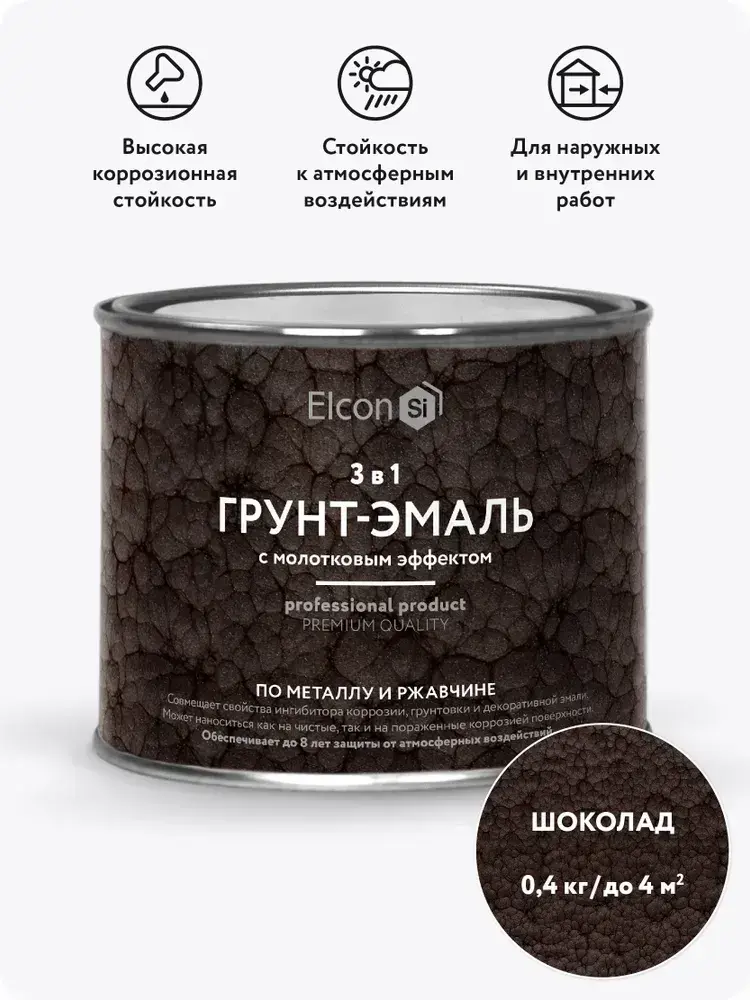 Грунт-эмаль 3 в 1 молотковая краска по металлу, по ржавчине, быстросохнущая, полуглянцевое покрытие, шоколад, 0,4 кг