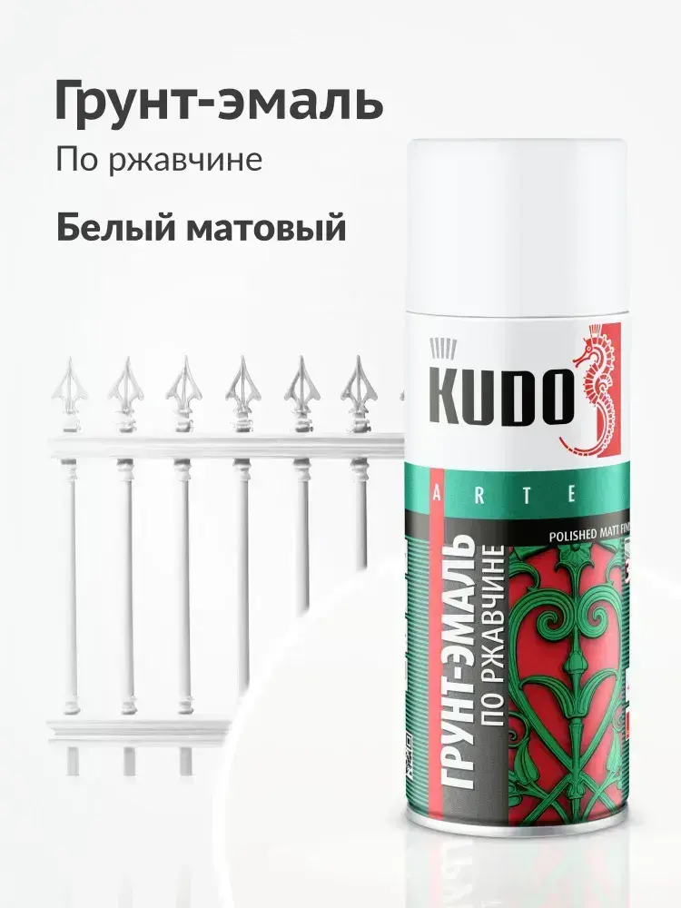 Грунт-эмаль 3 в 1 по ржавчине, по металлу KUDO высокопрочная. Аэрозольная краска в баллончике по ржавчине для металла. Белая матовая RAL 9003