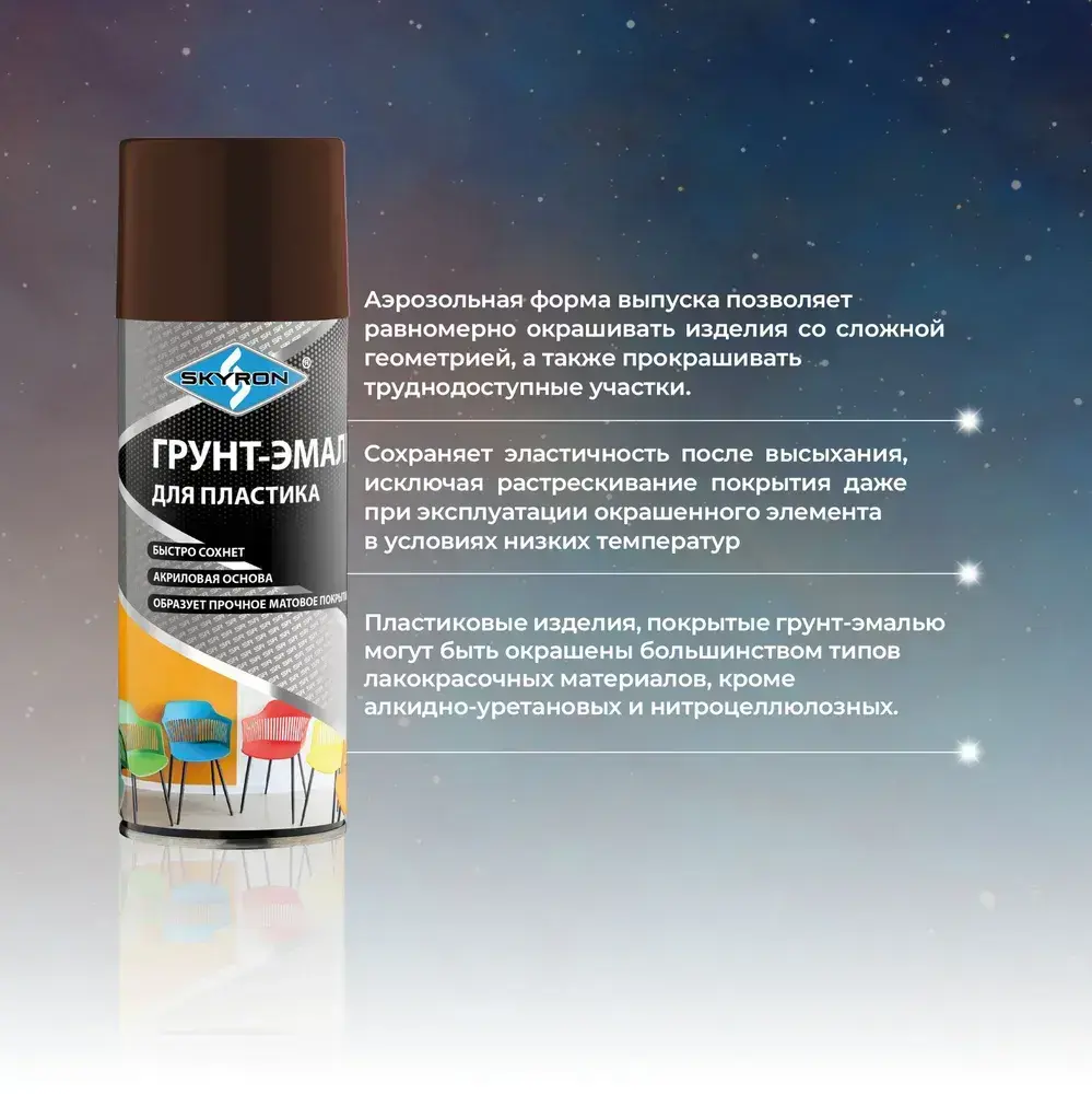 Грунт-эмаль для пластика SKYRON шоколадно-коричневая (RAL 8017)/ SR-28017