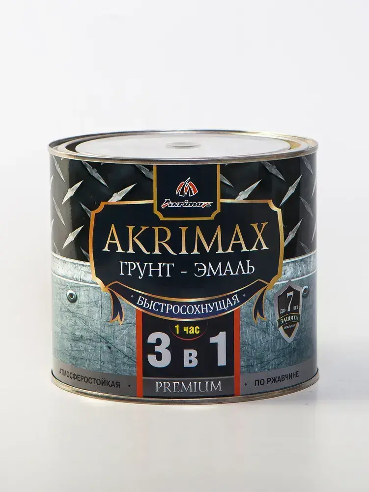 Грунт-эмаль по ржавчине 3 в 1, Краска по металлу, быстросохнущая 1,7 кг AKRIMAX-PREMIUM, матовое покрытие, серая
