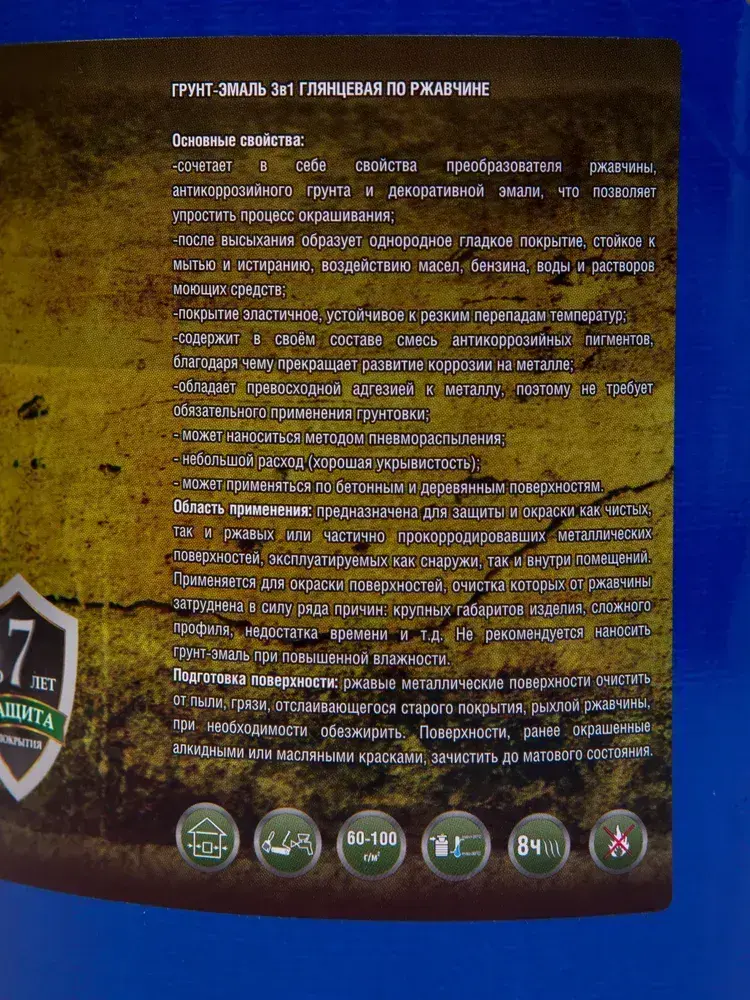 Грунт-эмаль по ржавчине 3 в 1, Краска по металлу, быстросохнущая 6 кг AKRIMAX-PREMIUM, глянцевое покрытие, черная
