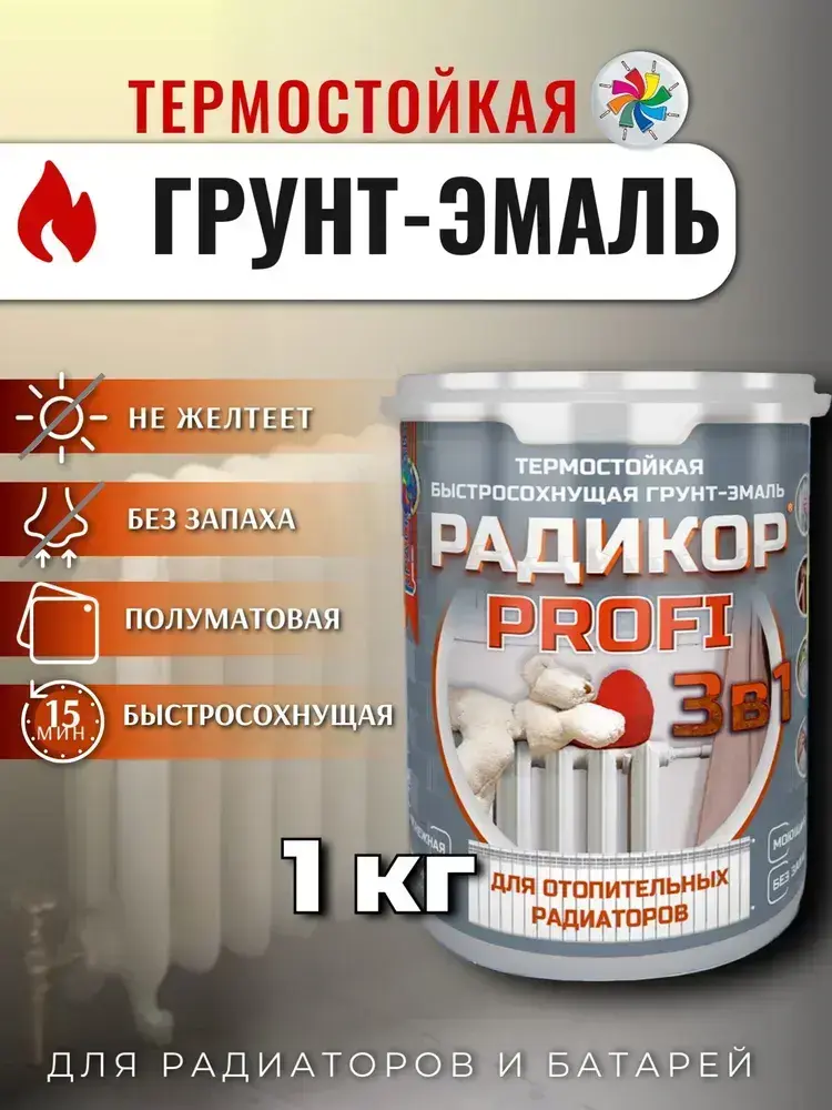 Грунт-эмаль Радикор PROFI 3 в 1, краска для батарей отопления, по металлу, по ржавчине, без запаха, белая