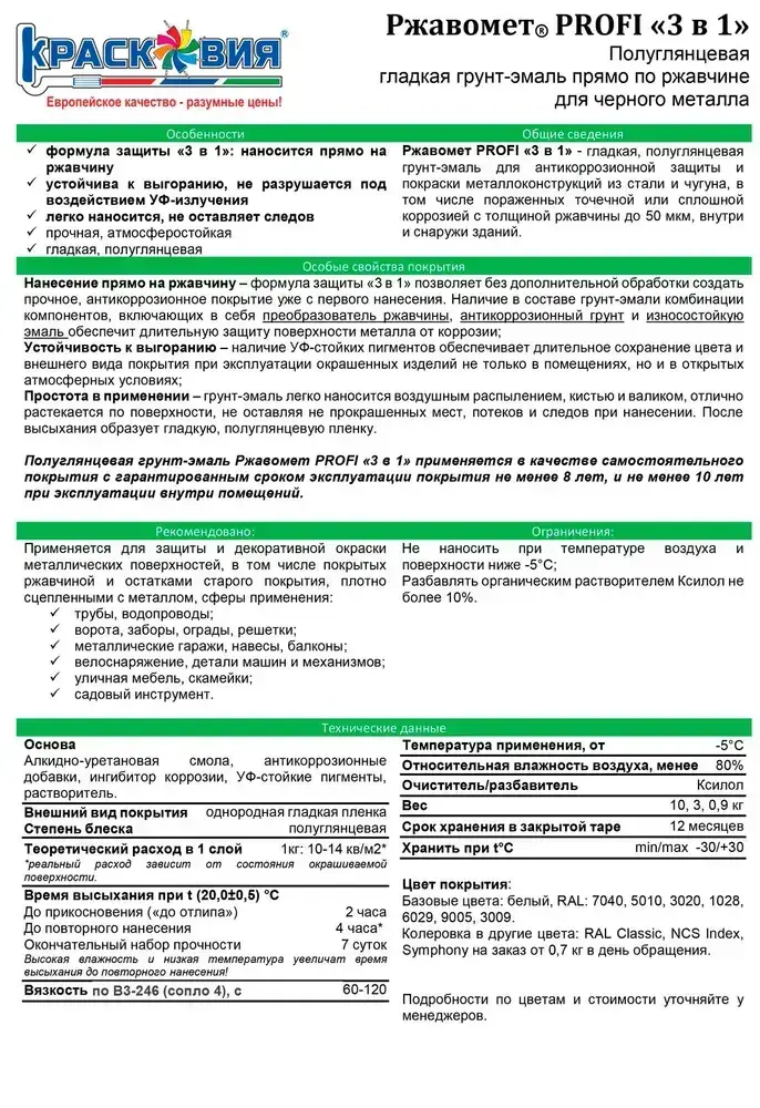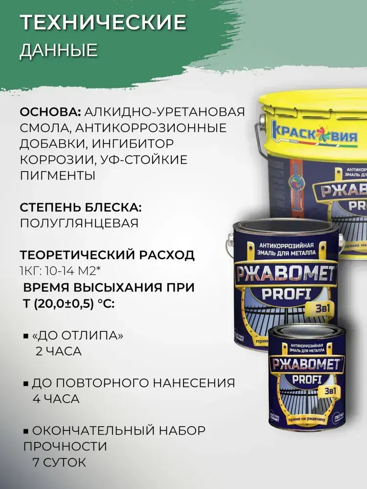 Грунт-эмаль Ржавомет PROFI 3 в 1, краска по металлу, по ржавчине, полуглянцевая, черная RAL 9005, 0,9 кг.